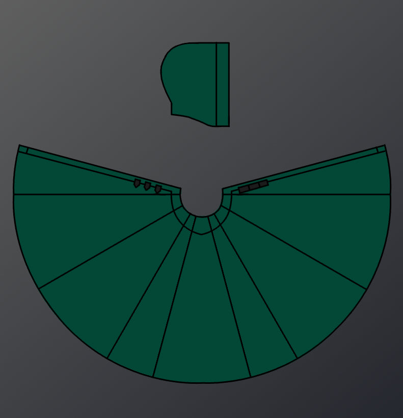 7/12th circle pattern: 9 panel, gored cloak for full coverage coverage and smooth drape.